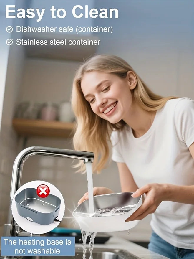 [Airtight & Leak-proof Design]- Our food heater lunch box uses four snaps combined and a built-in rubber seal that is made of safe and strong rubber raw materials, which is strong airtight and leak-proof, to prevent leaks and spills during transport. Even in a shaking car environment, there is no need to worry about food spills, The heatable lunchbox is also to keep your food fresh and hot.